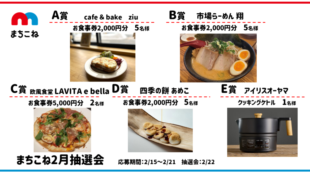 A賞 cafe&baku ziu お食事券2,000円分 5名様